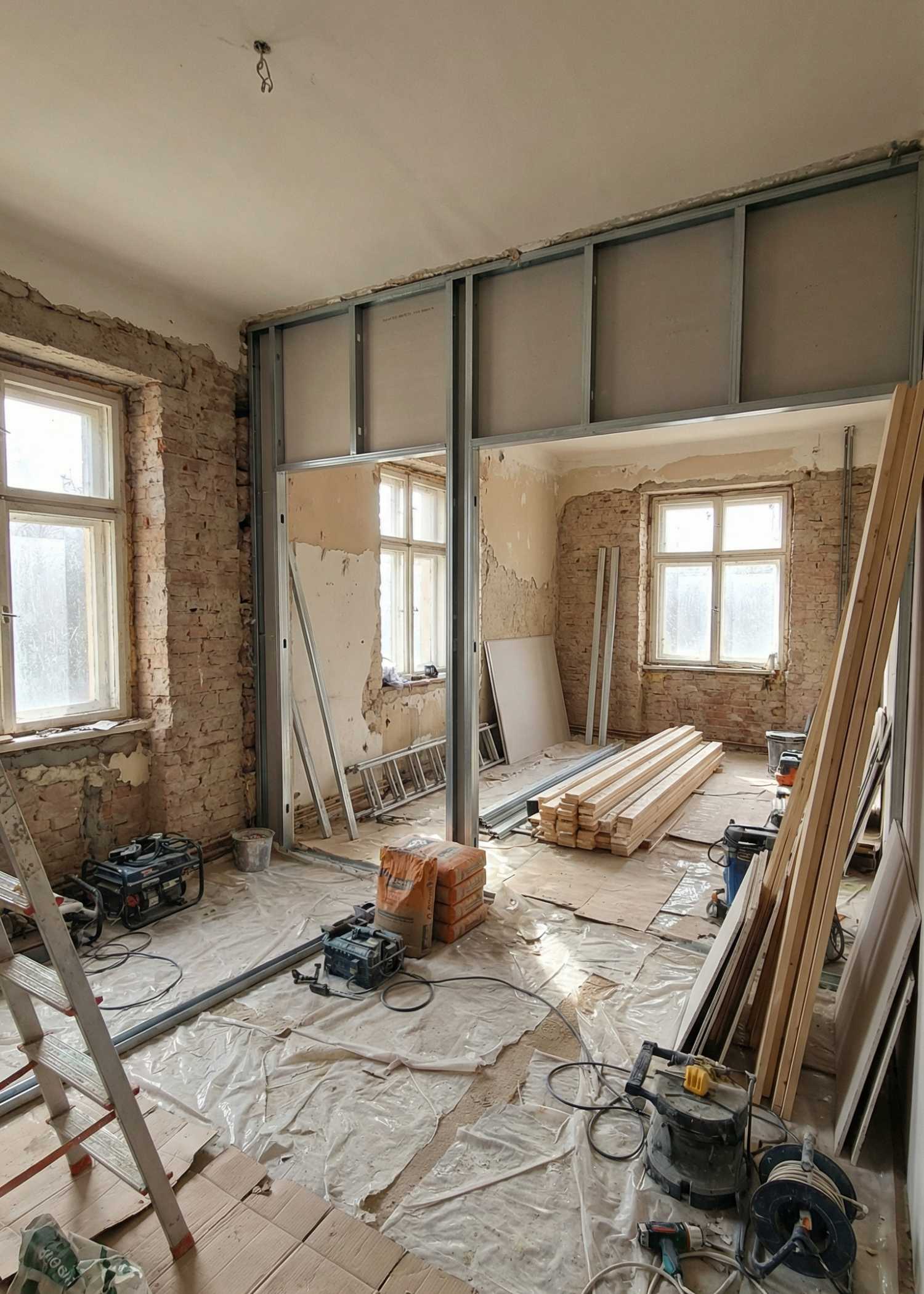 - Pose de nouvelles cloisons en BA13 et création de nouveaux espaces